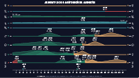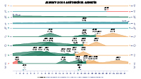 This timeline graphic visualizes the mundane astrological aspects of the month as follows: